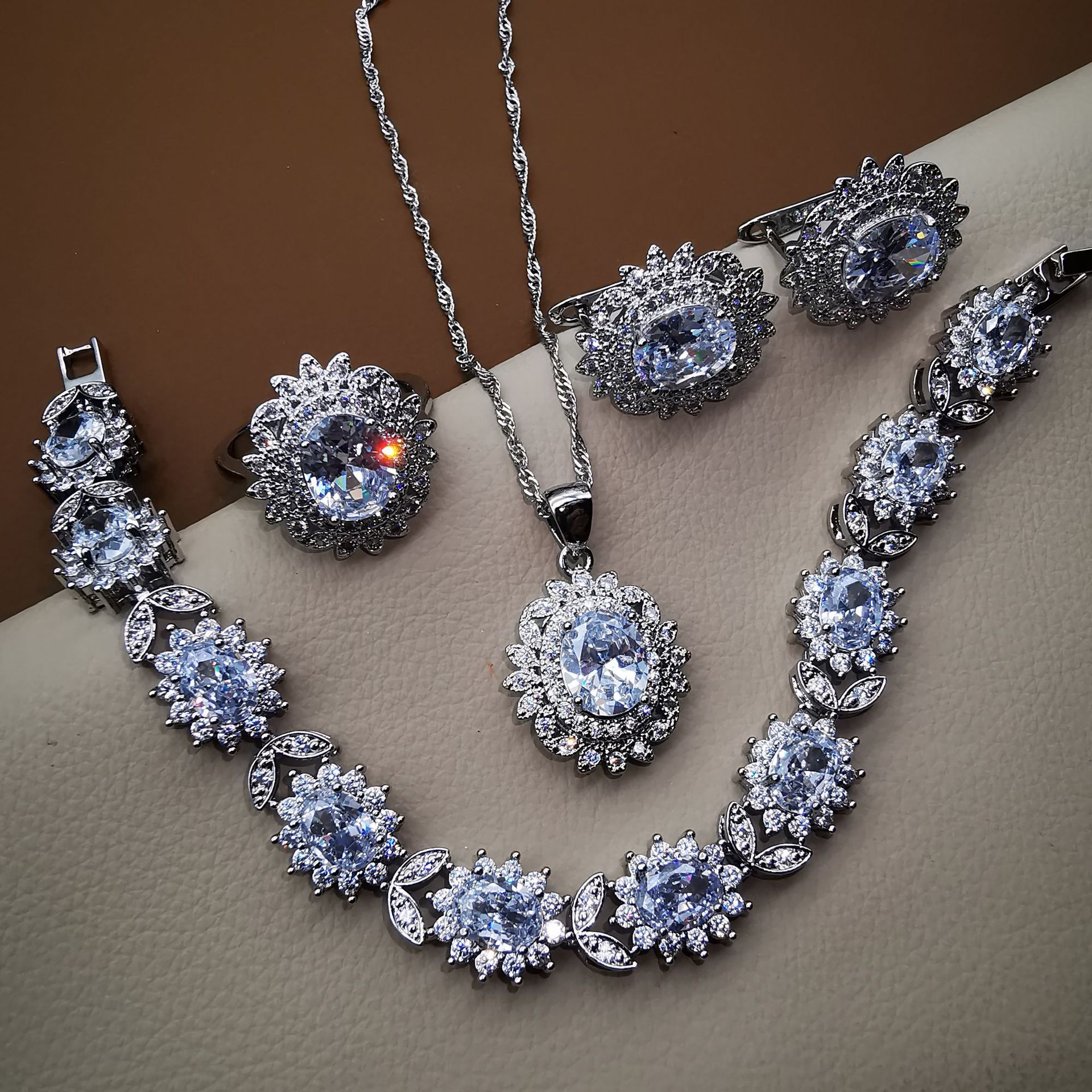 Factory Direct jewelry suit women's four-piece set micro-inlaid 3A grade zircon European and American style Foreign trade supply leaf bracelet