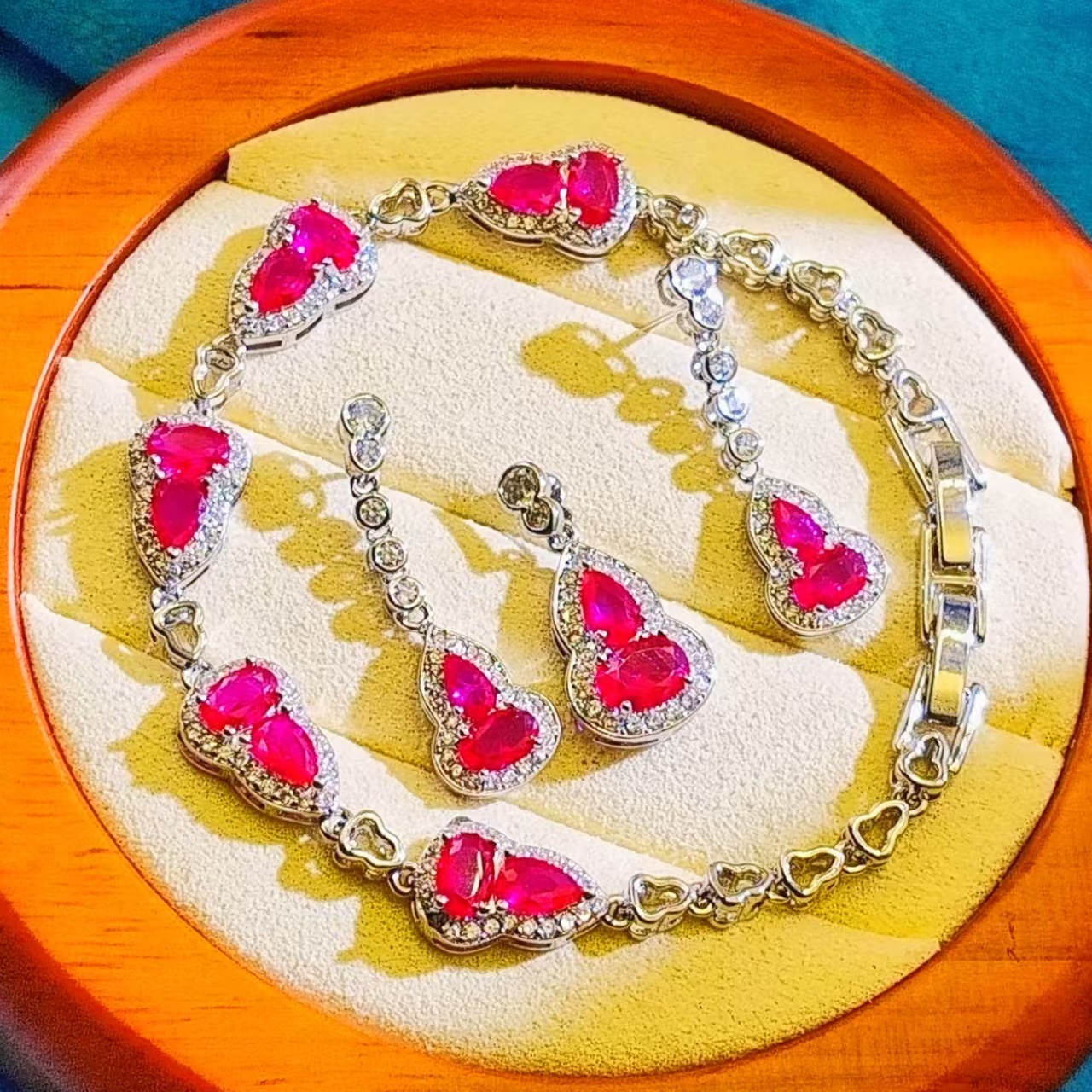 New Fashionable Cultured Sapphire Emerald Ruby Gourd Jewelry Set for Women Bracelet Earrings Pendant Necklace