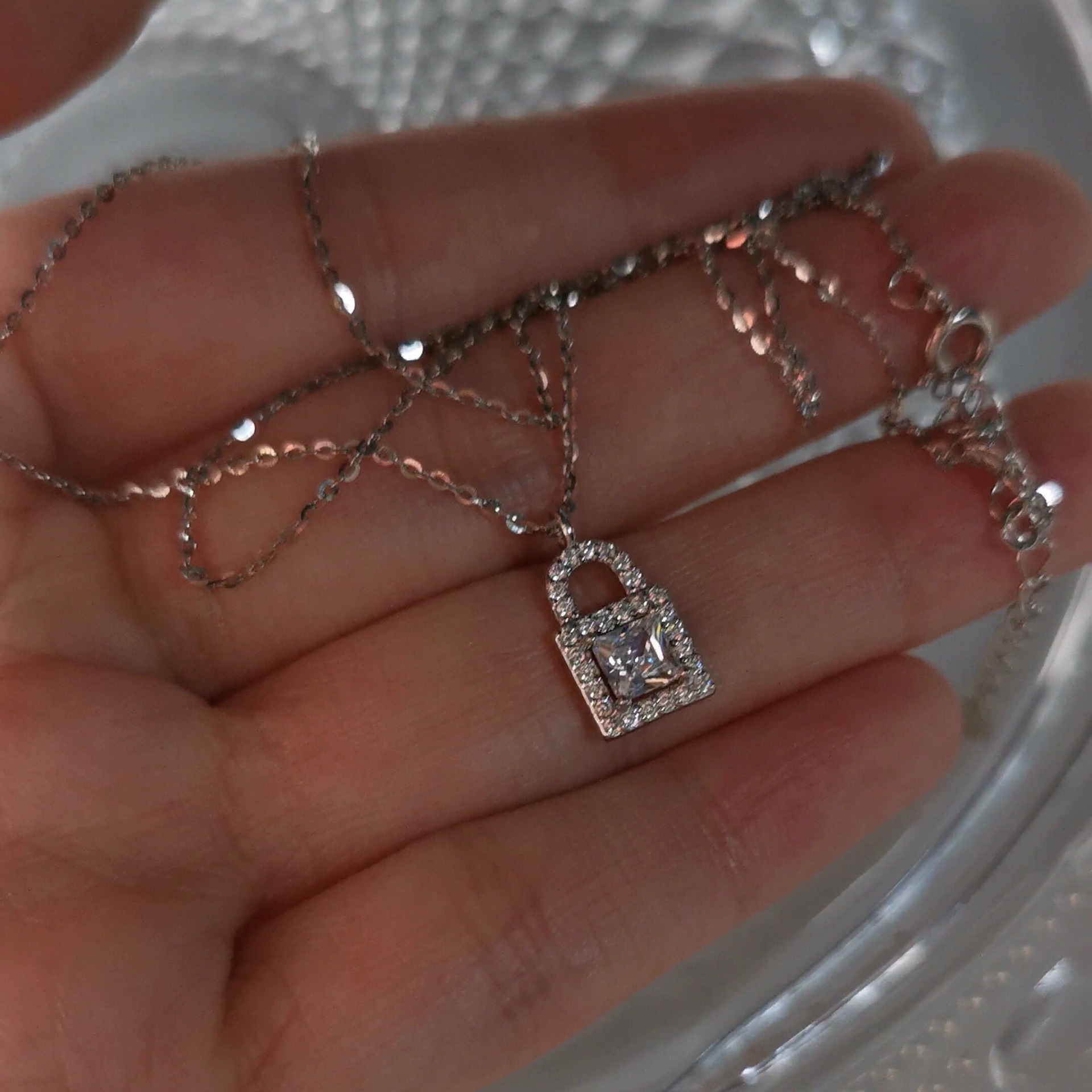 Korean Style Heavy Industry Diamond-encrusted Lock Pendant Necklace Women's Retro Small Distinctive Lockbuckle Clackbone Chain Stacked Trendy Jewelry
