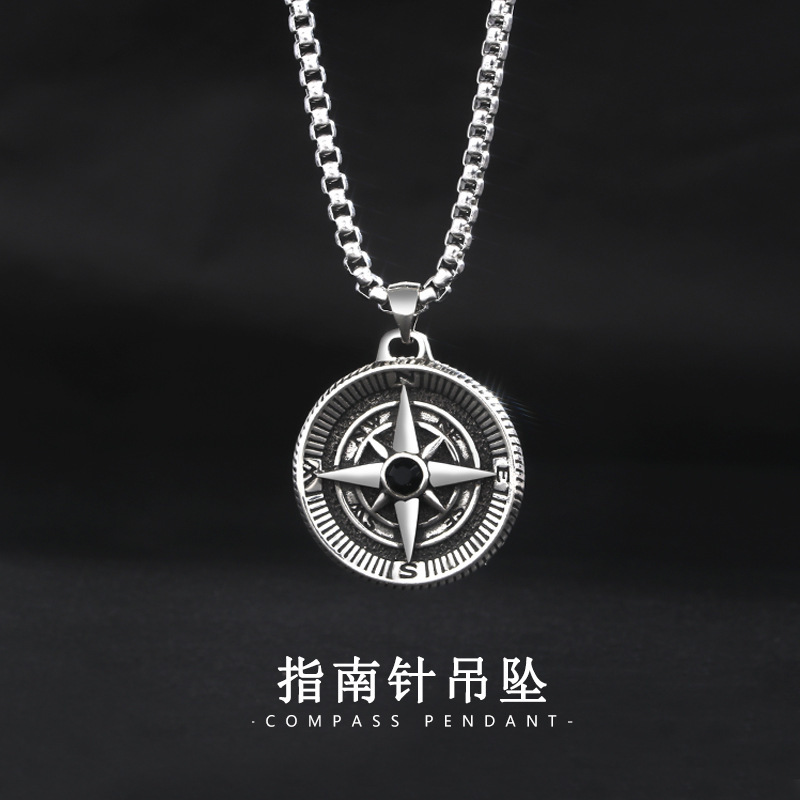 Xinqi Jewelry Vintage Compass Compass Necklace Men's Trendy Simple Style Personalized Punk Fashion All-match Disc Pendant