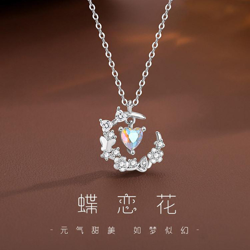 Minimalist Star and Moon Butterfly Necklace for Women, Light Luxury High-End Moon Pendant, Niche Design, Sweet and Dreamy Clavicle Chain