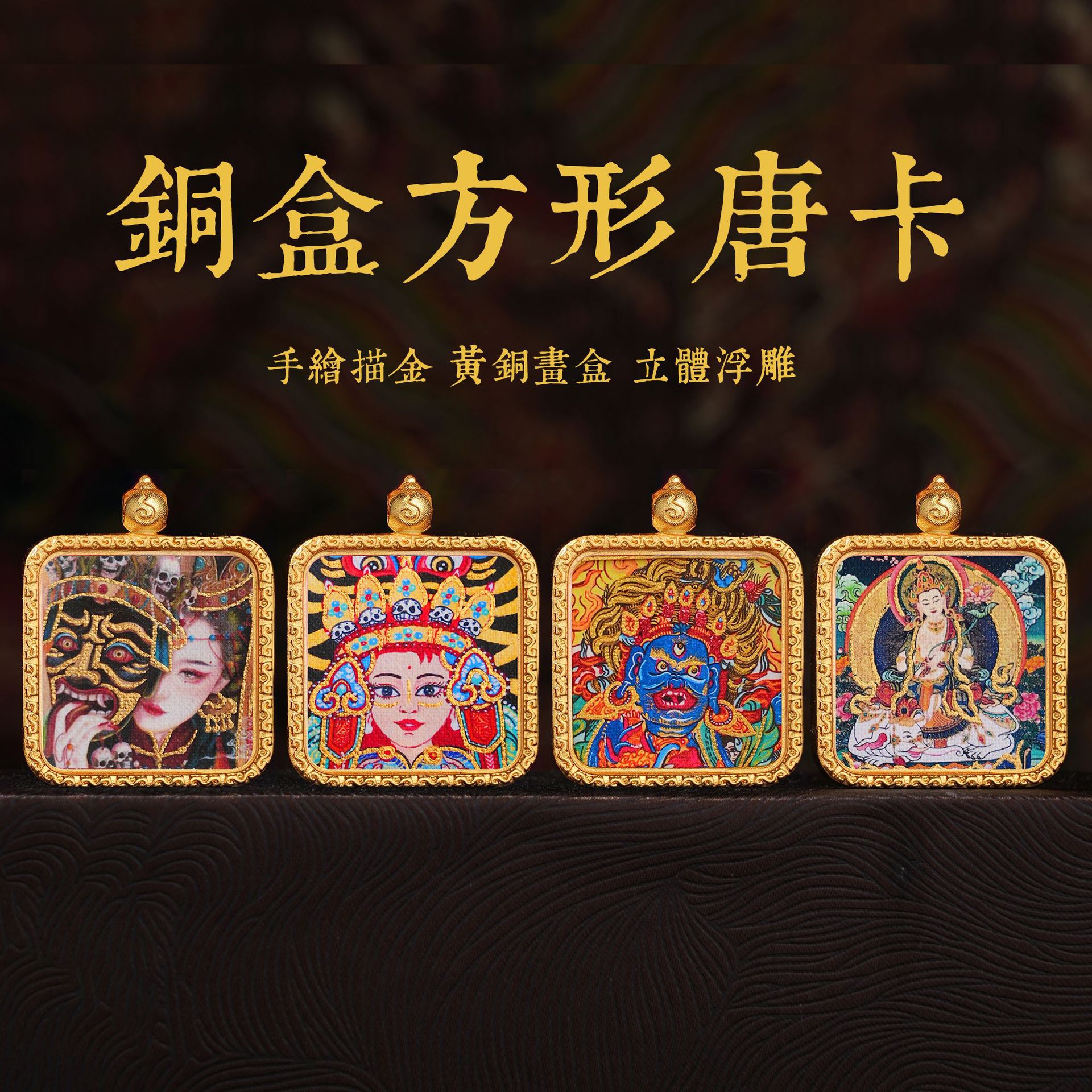 Thangka Pendant Xizang Hand-painted Gold Buddha Card Carry-on Samantabhadra Bodhisattva Huang Caishen Guanyin Small Thangka Gawu Box