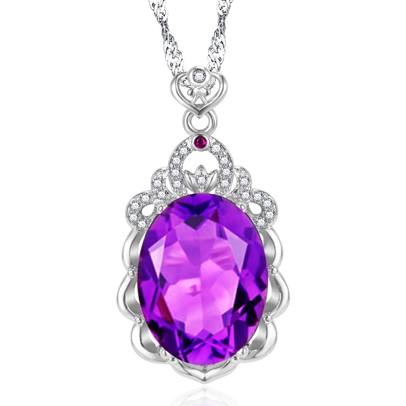 Shake Tone Taobao Express Live Imitation Amethyst Pendant Luxury Fashion Full Diamond Group Set Oval Diamond Purple Pendant