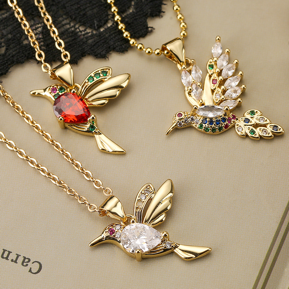 Aogu European and American Unique Copper Plated Real Gold Set Zircon Bird Pendant Necklace Female Niche Simple High-grade Clavicle Chain