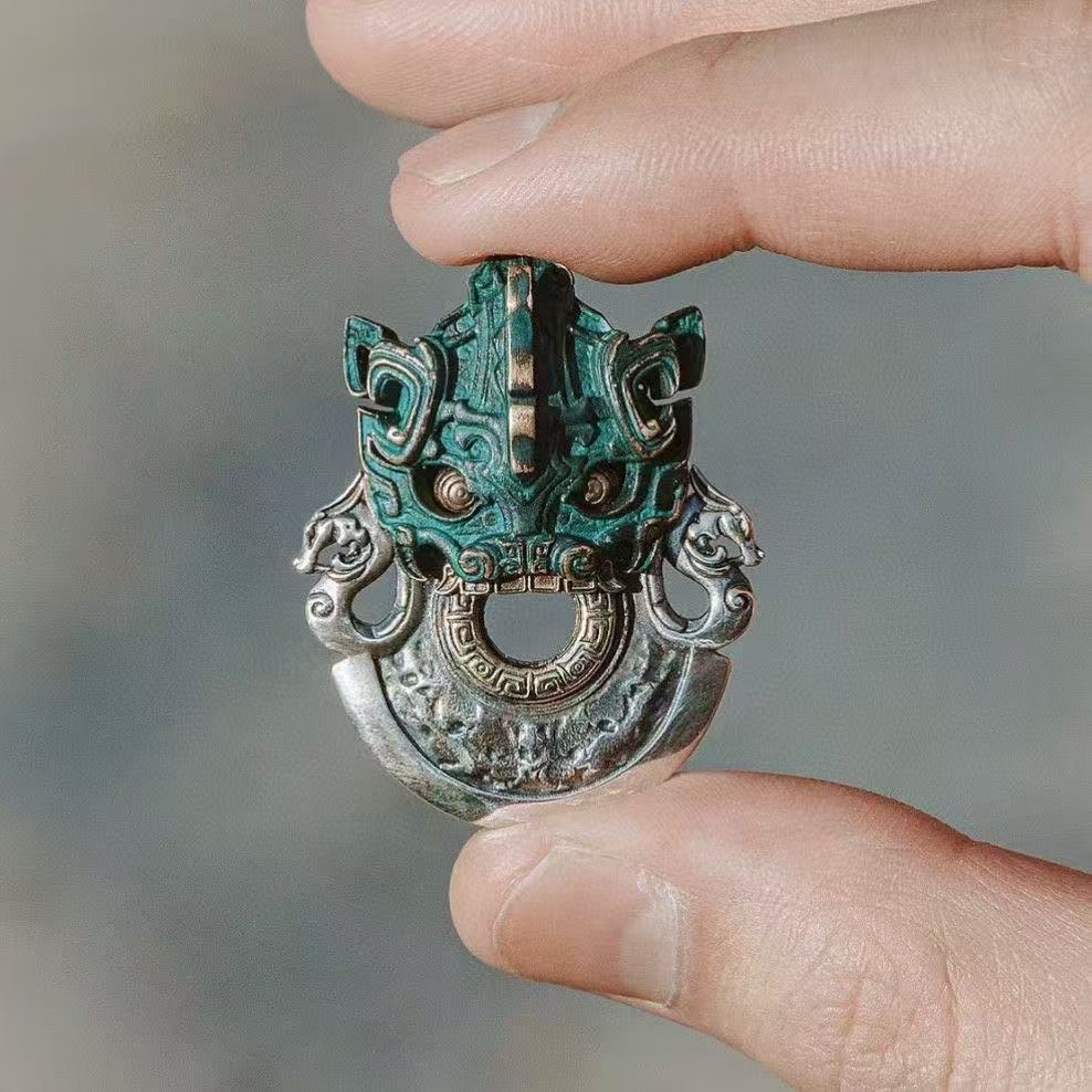 Direct Sale Chinese Style [Gourmand Ax and Dragon Pattern] Pendant with Chain, Combining Chinese-Style Bronze Elements for Retro Direct Sale