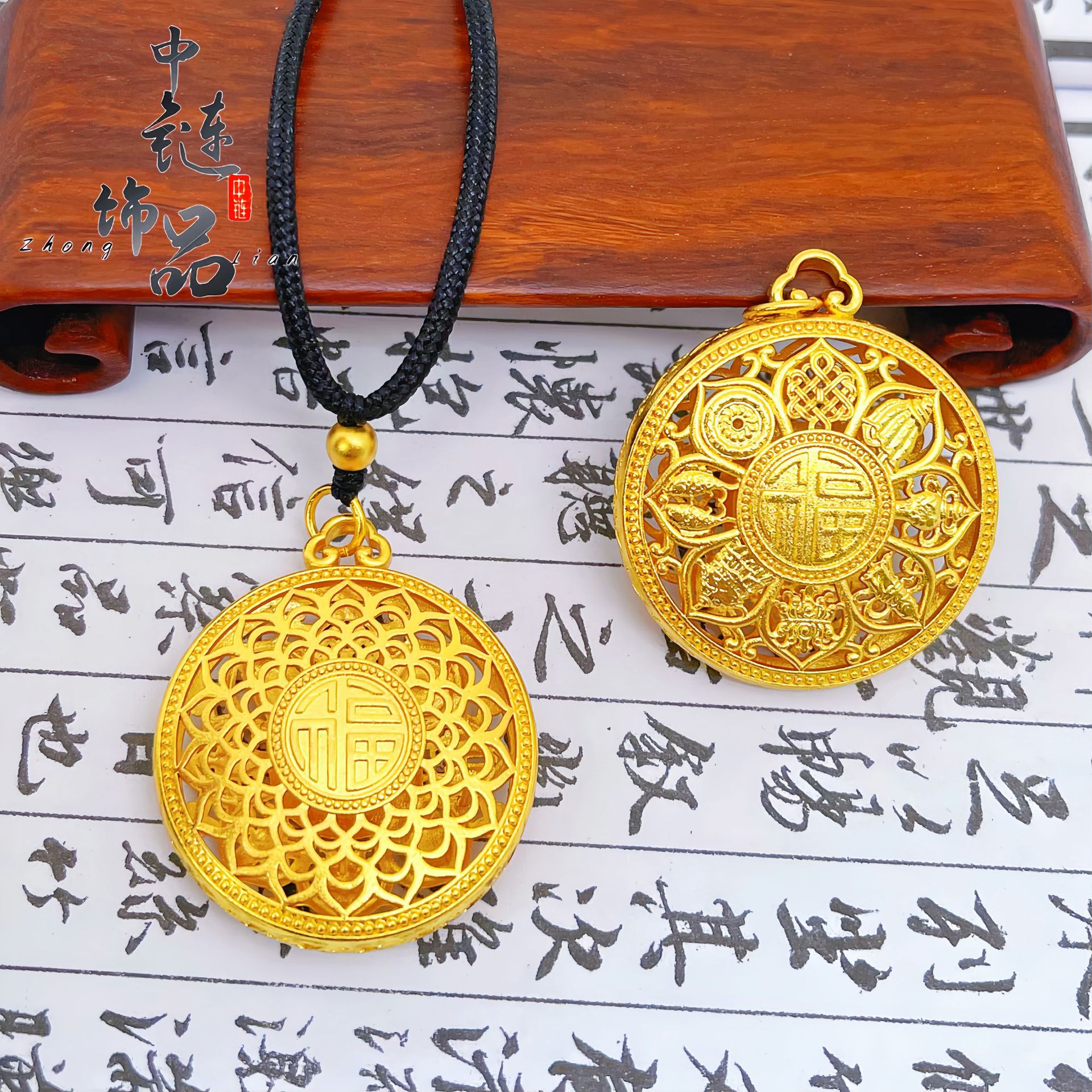Vietnam Sand Gold Fine Eight Treasure Compass Hollow Lotus Pendant Brass Gold Plated Ancient Fafu Compass Pendant Necklace