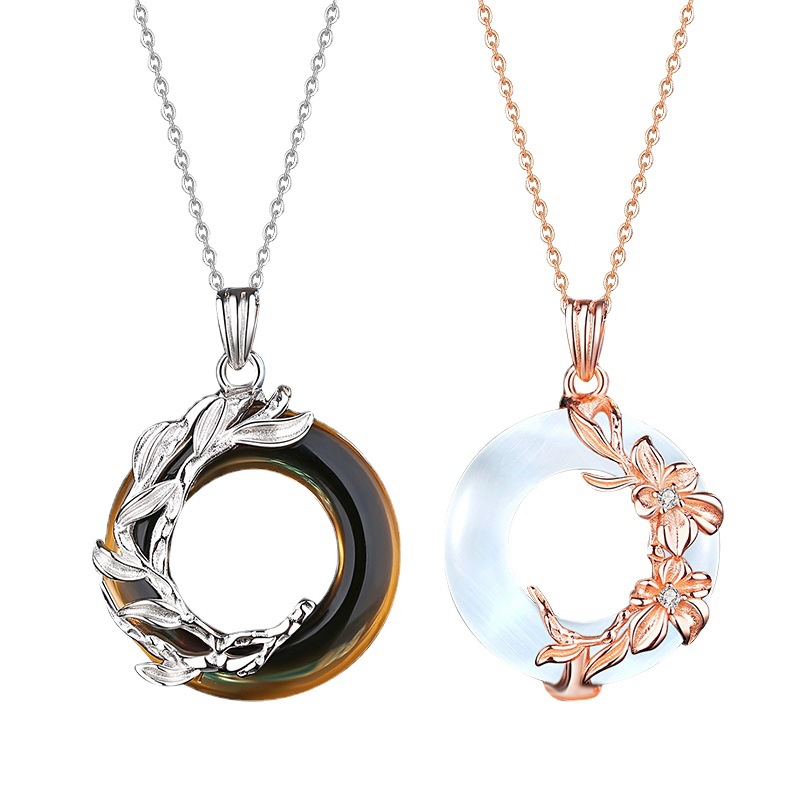 Cross-Border live broadcast wholesale three-generation three-generation couple necklace men and women a pair of obsidian Cat's Eye Stone peach blossom safety buckle pendant