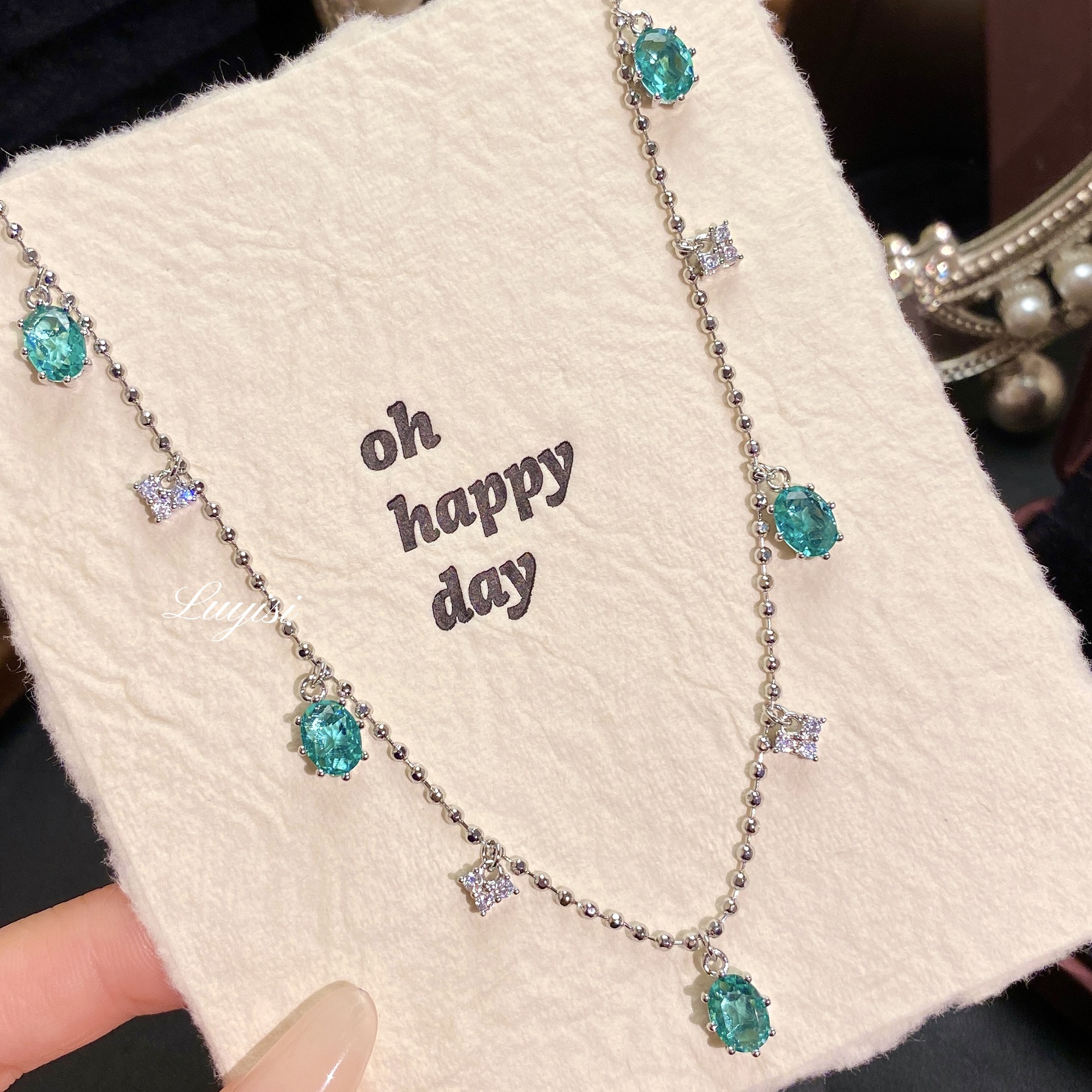 Island Story Lake Blue Paraiba Green Pendant Tassel Necklace Love Sparkling Diamond Light Luxury High-End Clavicle Chain for Women