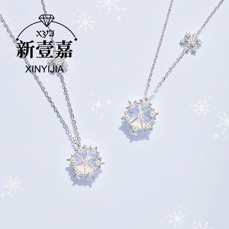 Dreamy Light Luxury Style Transparent Aurora Snowflake Necklace Women's New Elegant Snowflake Pendant Clavicle Chain Holiday Gift