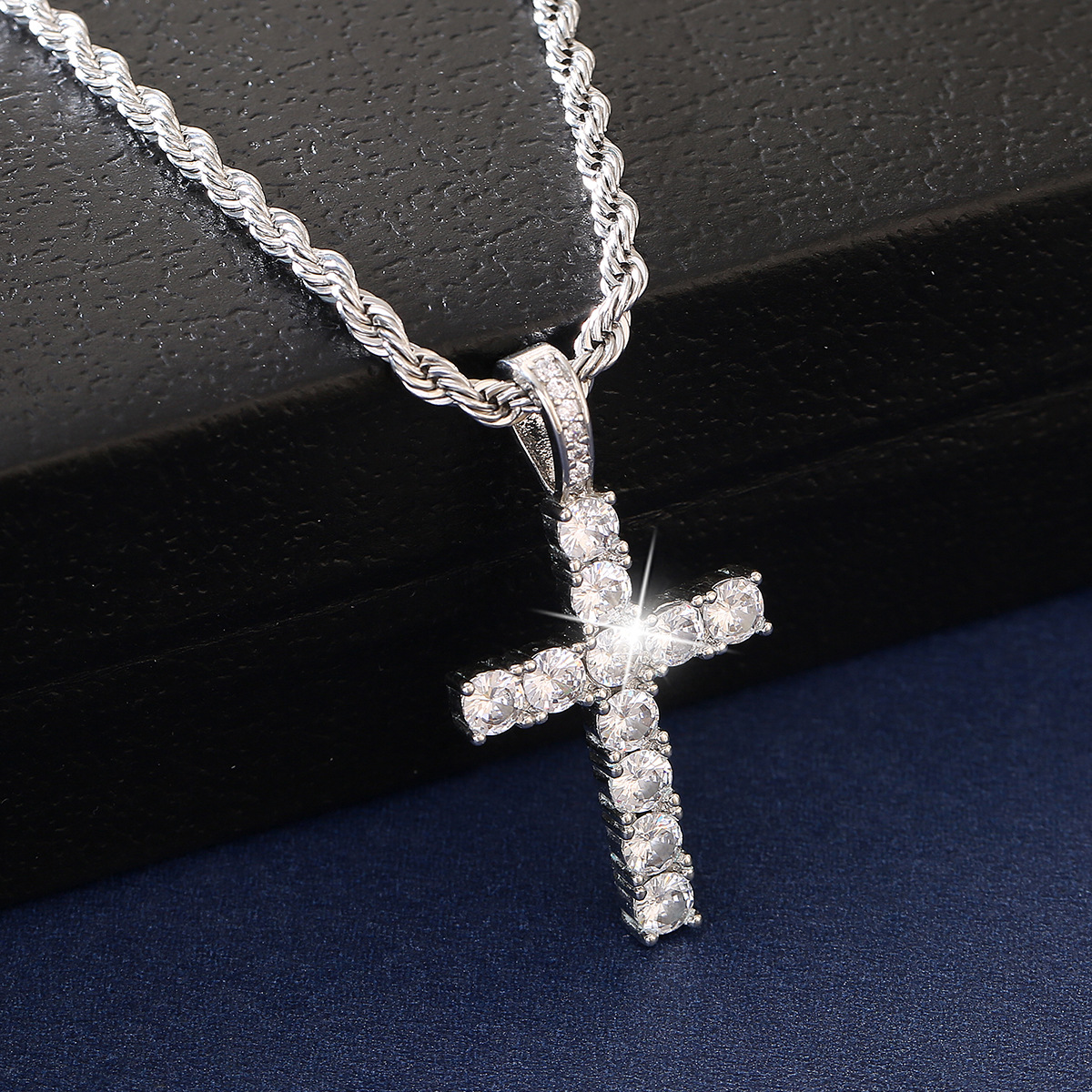 European and American hip-hop necklace classic zircon cross pendant trendy men's necklace foreign trade jewelry manufacturers wholesale