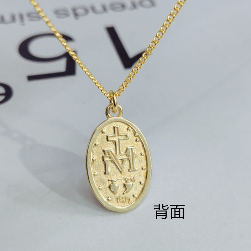 European and American Virgin Mary Portrait Necklace Gold-plated Personality Gold-plated Double-sided Oval Collarbone Necklace 1215