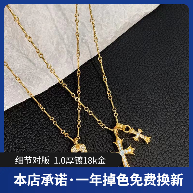 Ins Vintage Punk Cross Necklace Personalized Pendant Zircon European and American Necklace Niche Design Titanium Steel Clavicle Chain