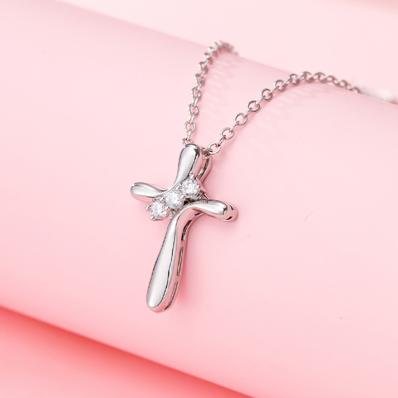 Cross-border Creative Women's Popular Cross Jewelry Copper Inlaid Zircon Cross Pendant All-match Temperament Necklace Women