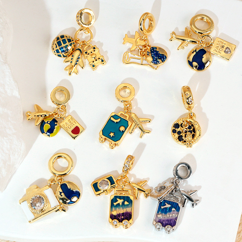 Micro-Paved Zircon Aircraft Luggage Travel Series Wings Heart Multi-Accessory Large Hole Pendant Necklace Copper Accessories