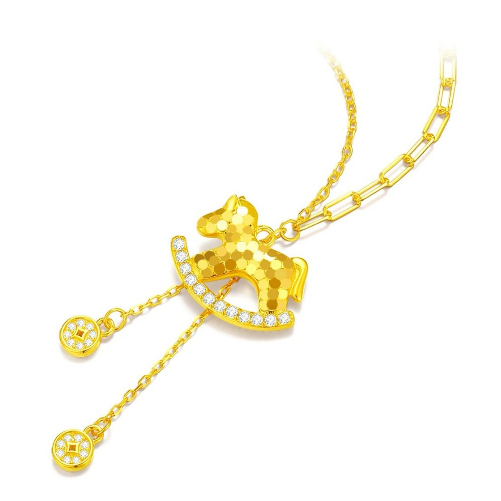French "Get Rich Instantly" Golden Horse Year Necklace for Women, Light Luxury Niche Design Pendant Clavicle Chain