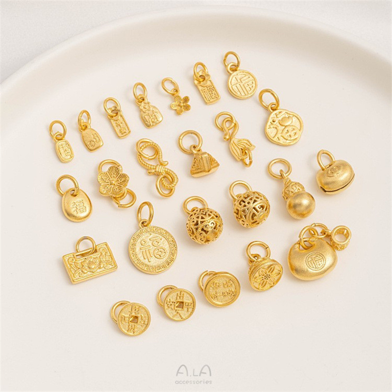 Strong Color Retention Sand Gold Pendant Xiaofu Brand S Hook Buckle Cut Out Ball Copper Coin Pendant Handmade DIY Handmade String Jewelry Pendant