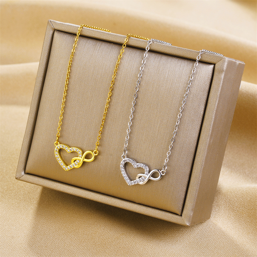 Fashion Micro-Inlaid Heart-Shaped Figure-Eight Pendant DIY Accessory Titanium Steel Necklace European and American Trendy Creative Heart-Shaped Collarbone Chain Jewelry