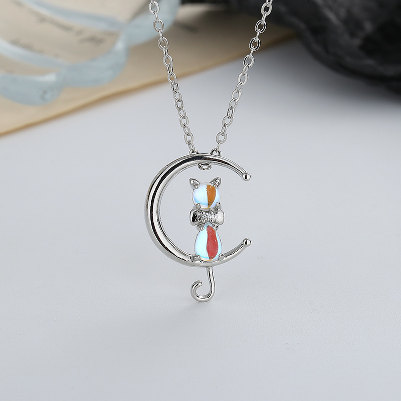 Ancient Cat Ning Zircon Moon Cat Necklace Japanese and Korean Pendant Live Gift Supply Moonstone Kitten Clavicle Chain