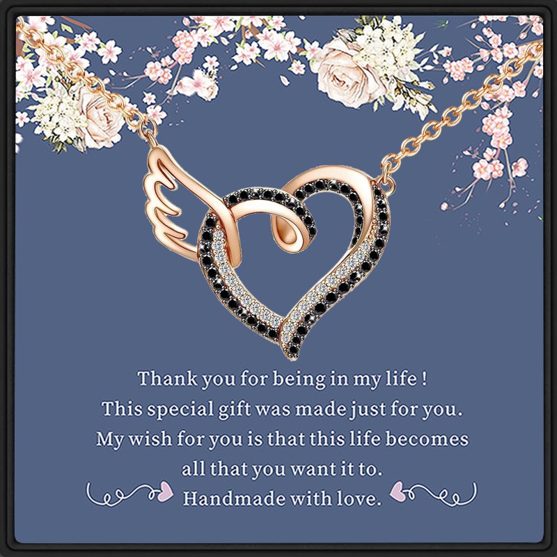 Spring New Amazon Heart-Shaped Necklace for Women Ins Style European and American Wings Zircon Pendant Clavicle Chain Cross-Border Supply