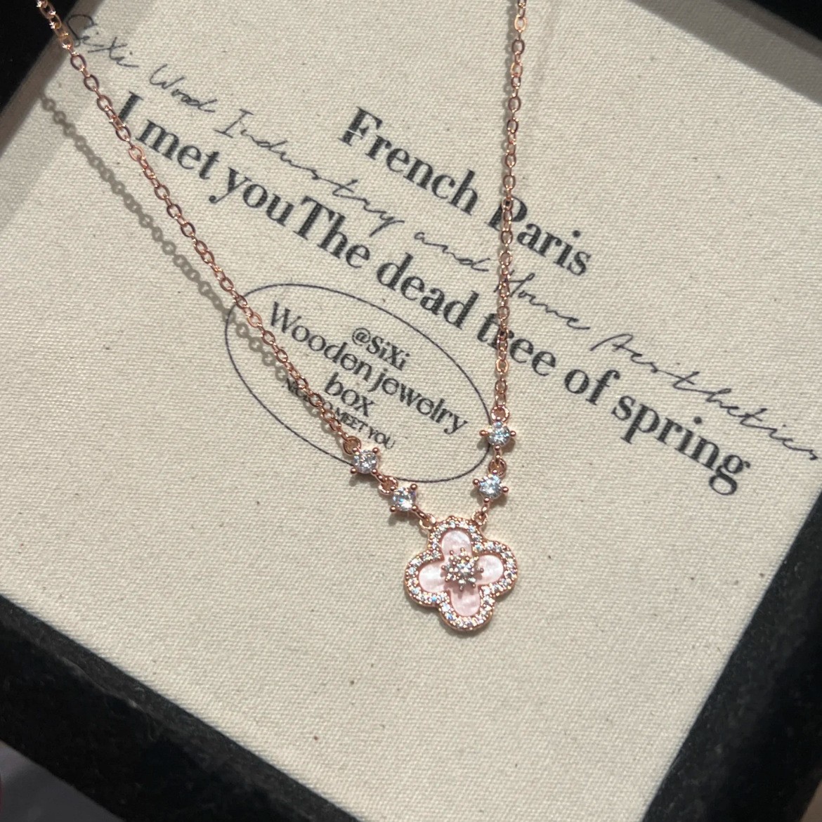 Popular Vietnamese Sand Gold Lucky Bag Rich Flower Pendant Clavicle Chain Heart Rose Necklace Copper Gold-Plated Clover Necklace