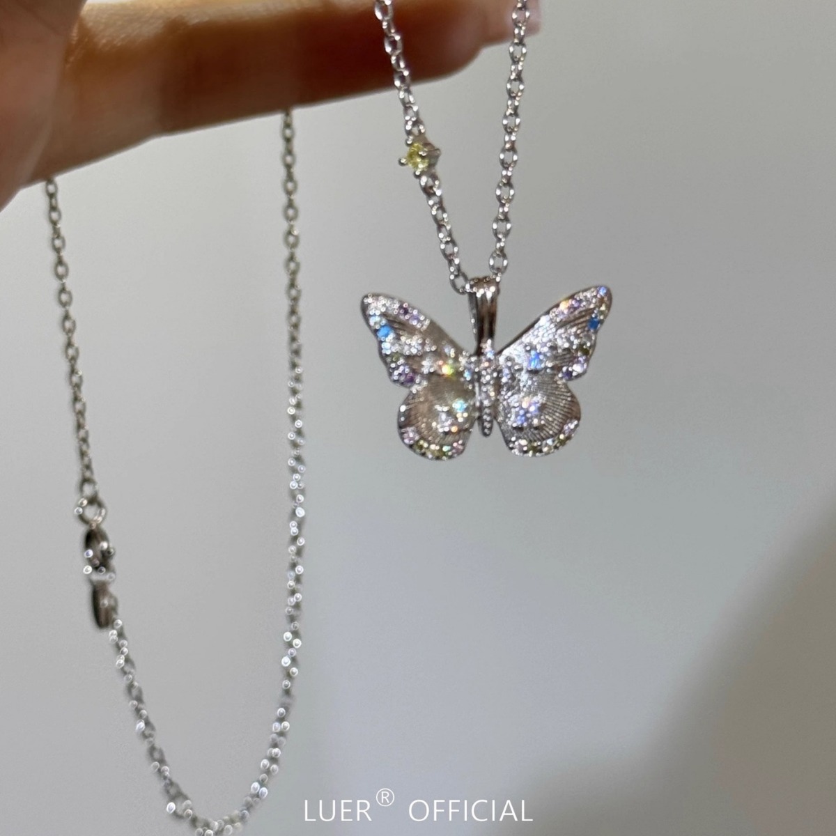 Great beauty! Seiko! High-grade Diamond-encrusted Color Zirconium Dreamy Brushed Butterfly Light Luxury Exquisite Clavicle Chain Necklace for Niche Women
