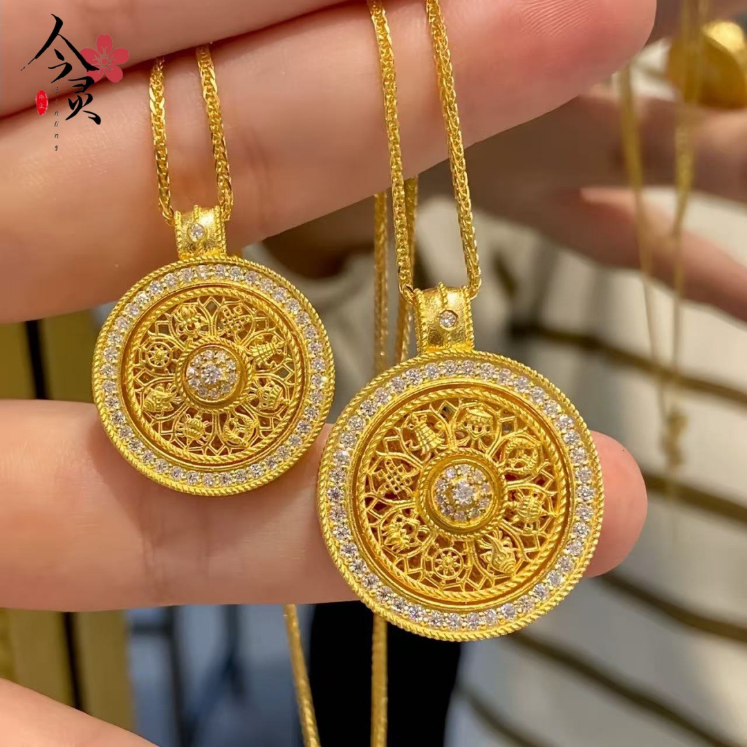 Internet Celebrity Live Broadcast with Fine Sha Jin Fu Lock Ancient Bell Baby Big Lock Hollow Long Life Lock Necklace Pendant