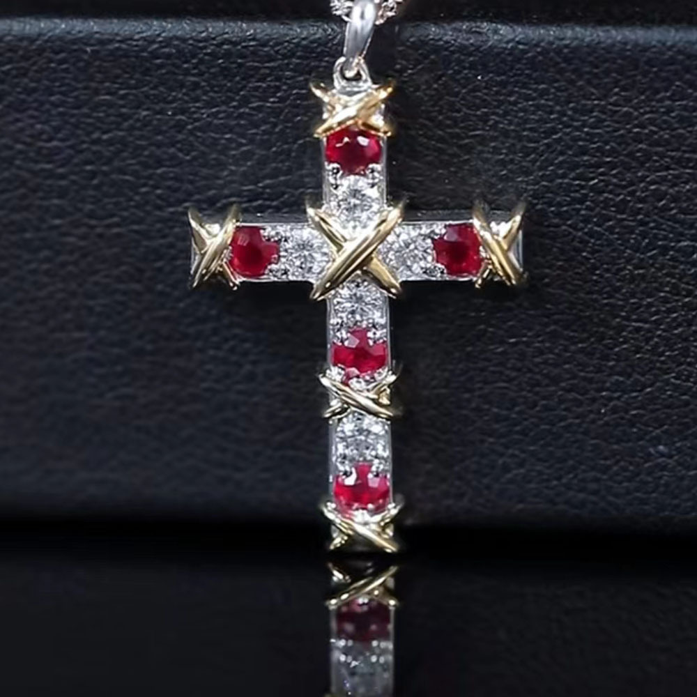 European and American fashion hot cross pendant necklace creative gold-plated color inlaid zircon pendant ring for men and women