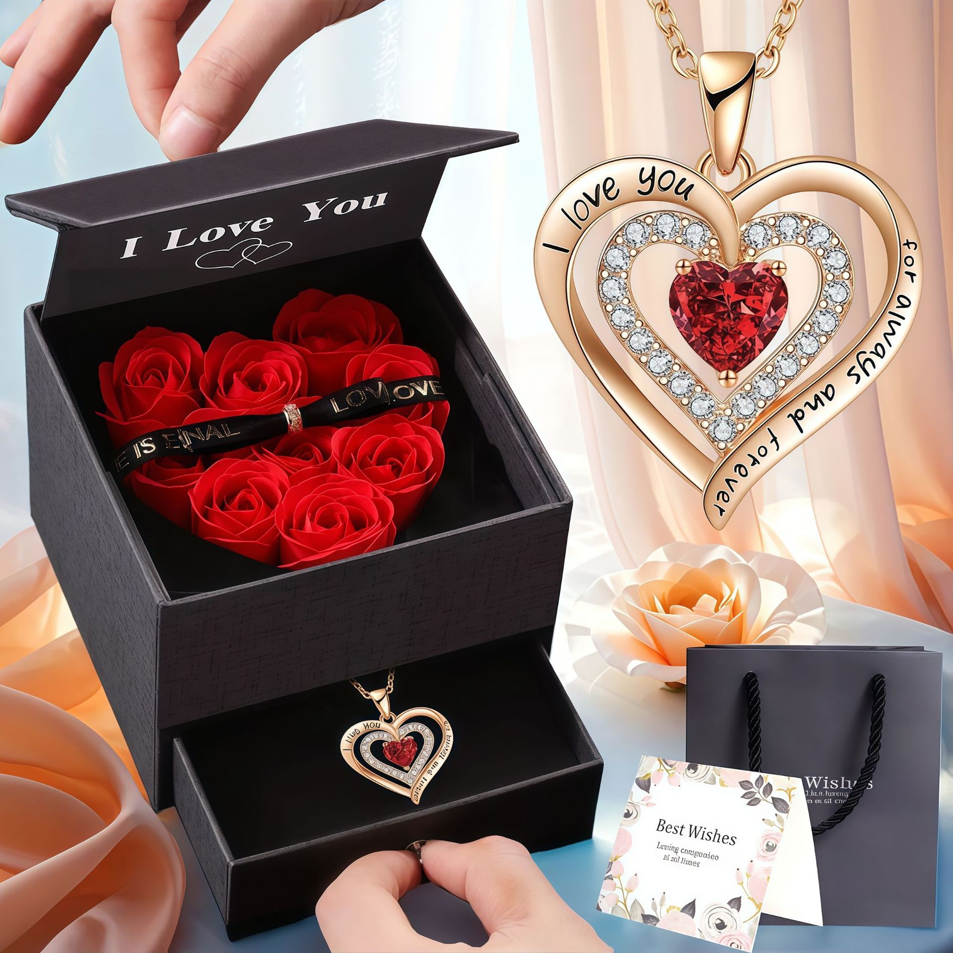 Cross-Border Ozone Russian Popular Birthstone Necklace Women's Rose Gold Birthstone Heart Pendant Versatile Clavicle Chain