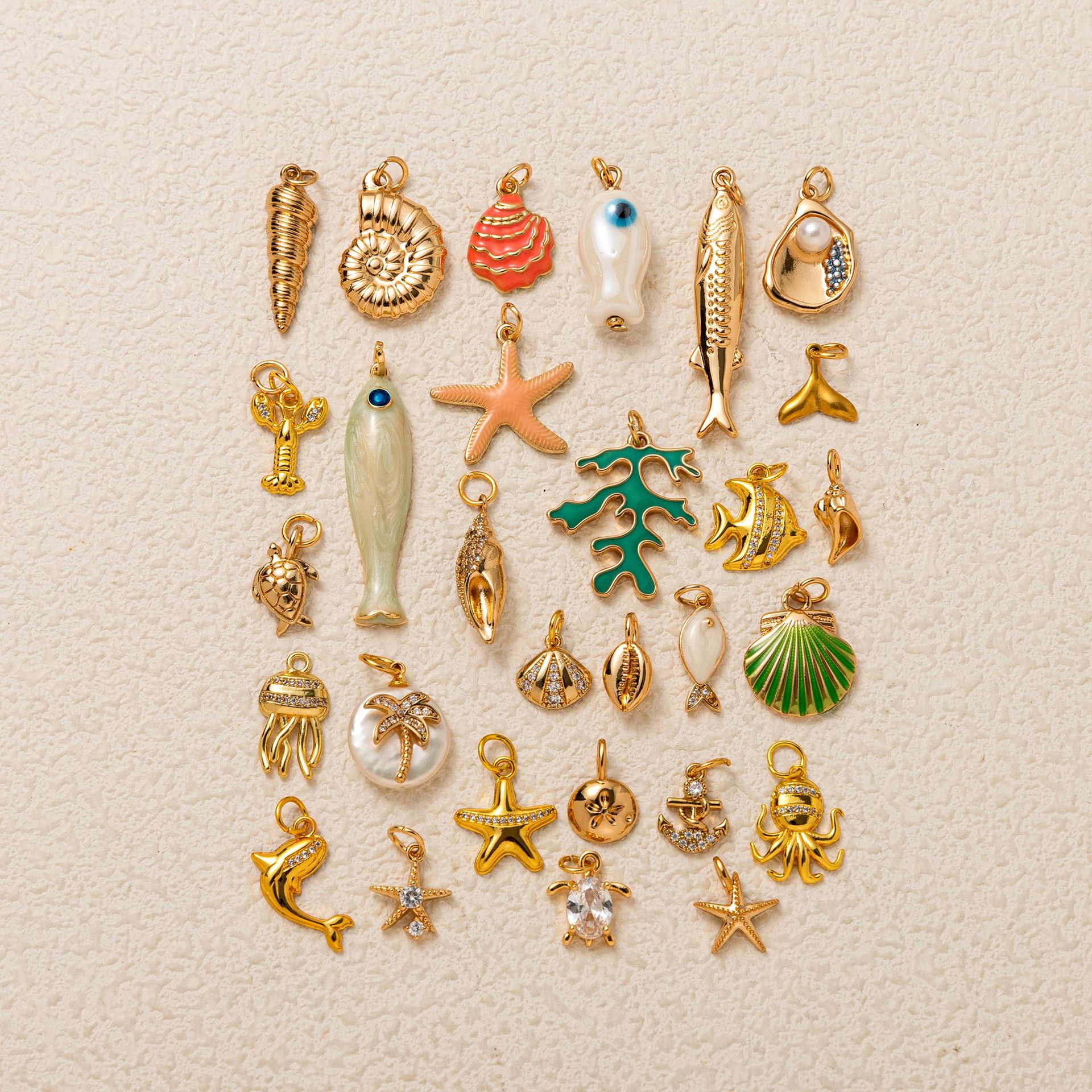 European and American Cross-Border Simple Stainless Steel Necklace Hot Selling Marine Series Decent Shell Coral Fish Color-Preserving Pendant