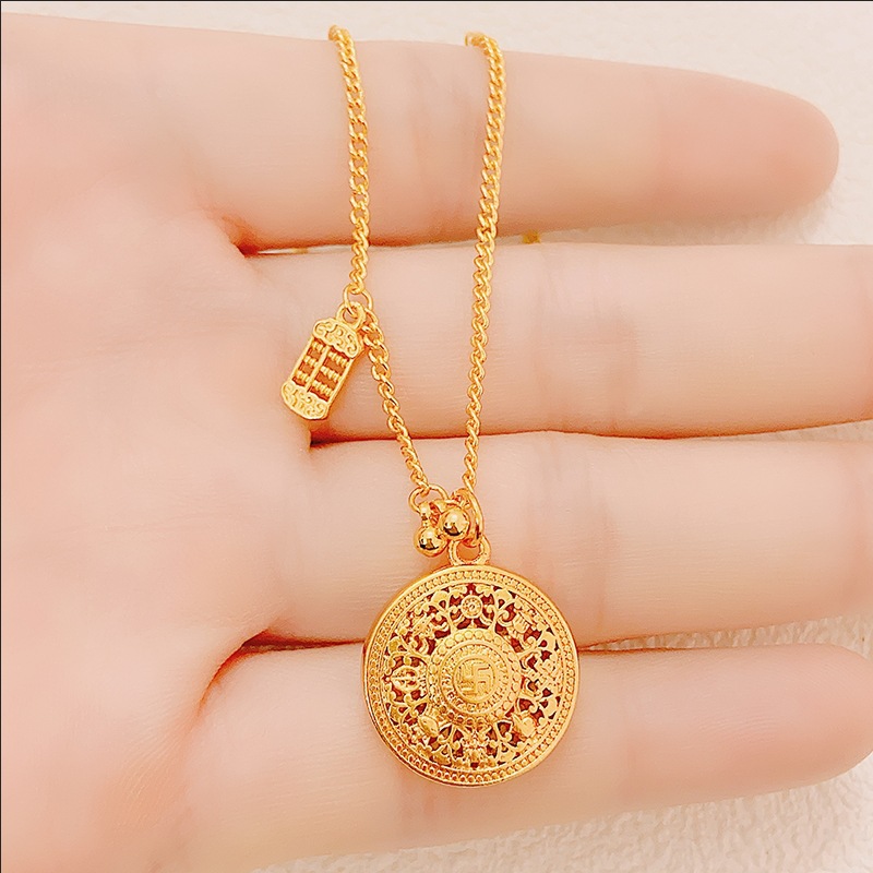 Tiktok Trending Ancient Eight-Treasure Compass Necklace for Women, Brass Gold-Plated Fortune Pendant Clavicle Chain, Gift for Girlfriend