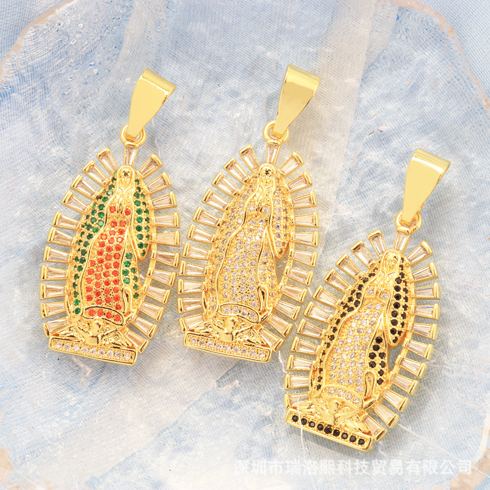 European and American Cross-Border Foreign Trade Personalized Religious Virgin Mary Copper Micro-Inlaid Cubic Zirconia Fashion Necklace Pendant Jewelry