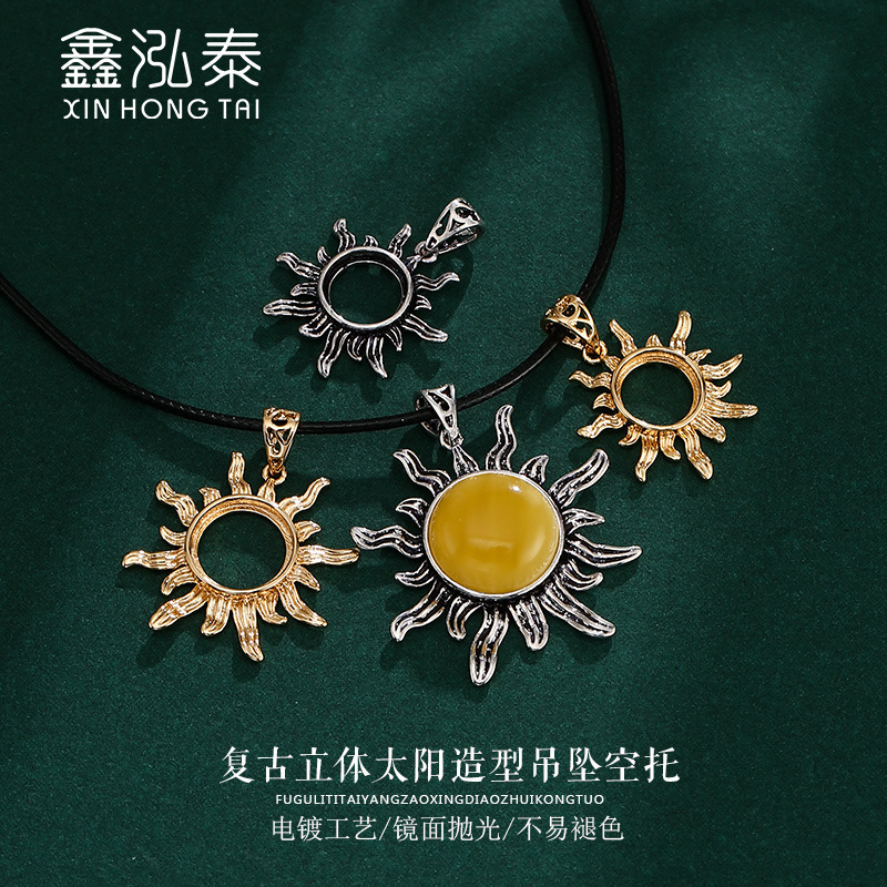 Retro simple pendant empty support sunflower men and women inlaid turquoise beeswax round pendant empty support 10-15mm