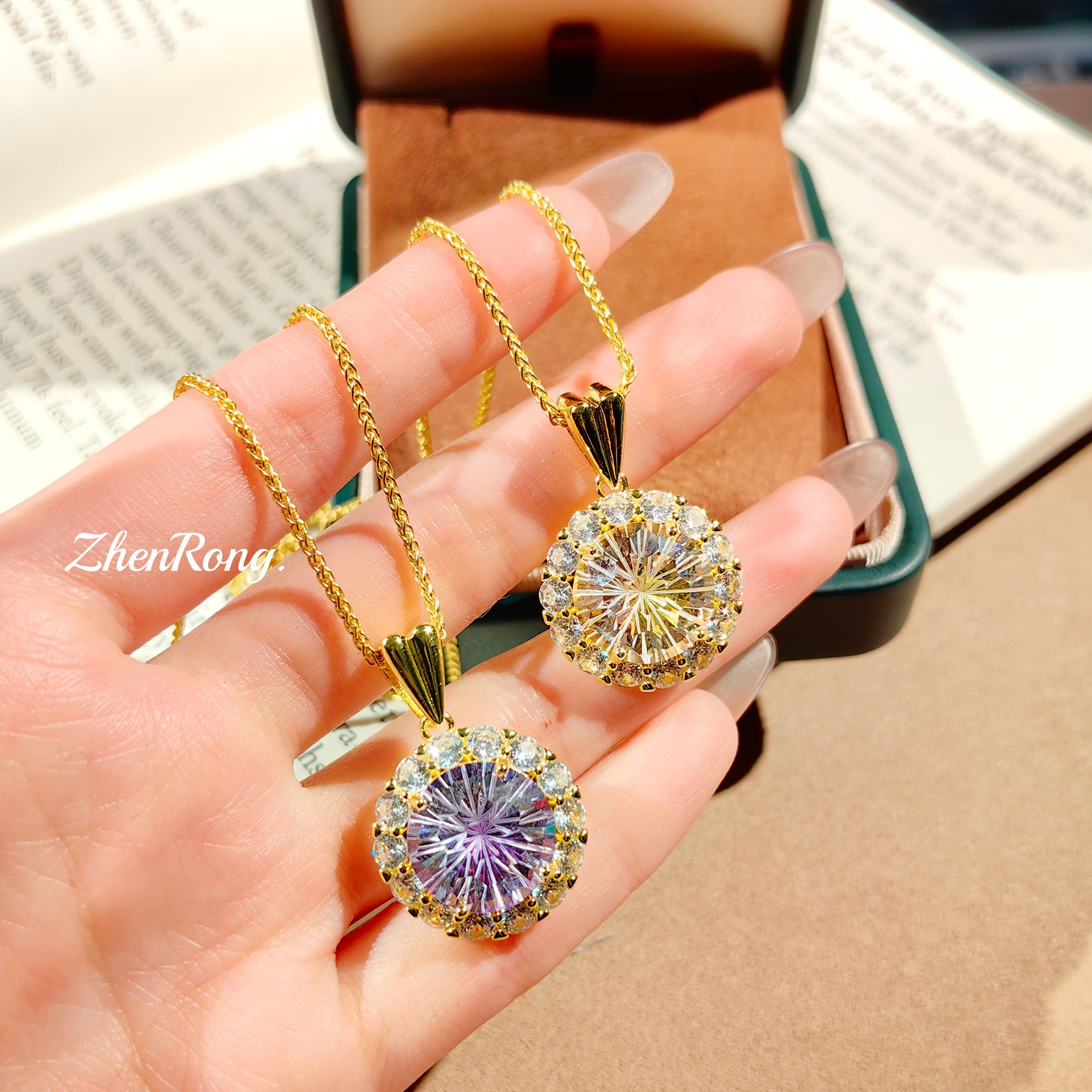Fashionable Light Luxury Gold-Plated Large Carat Firework-Cut Zircon Potato Purple Diamond Necklace with Colorful Diamond Pendant for Women