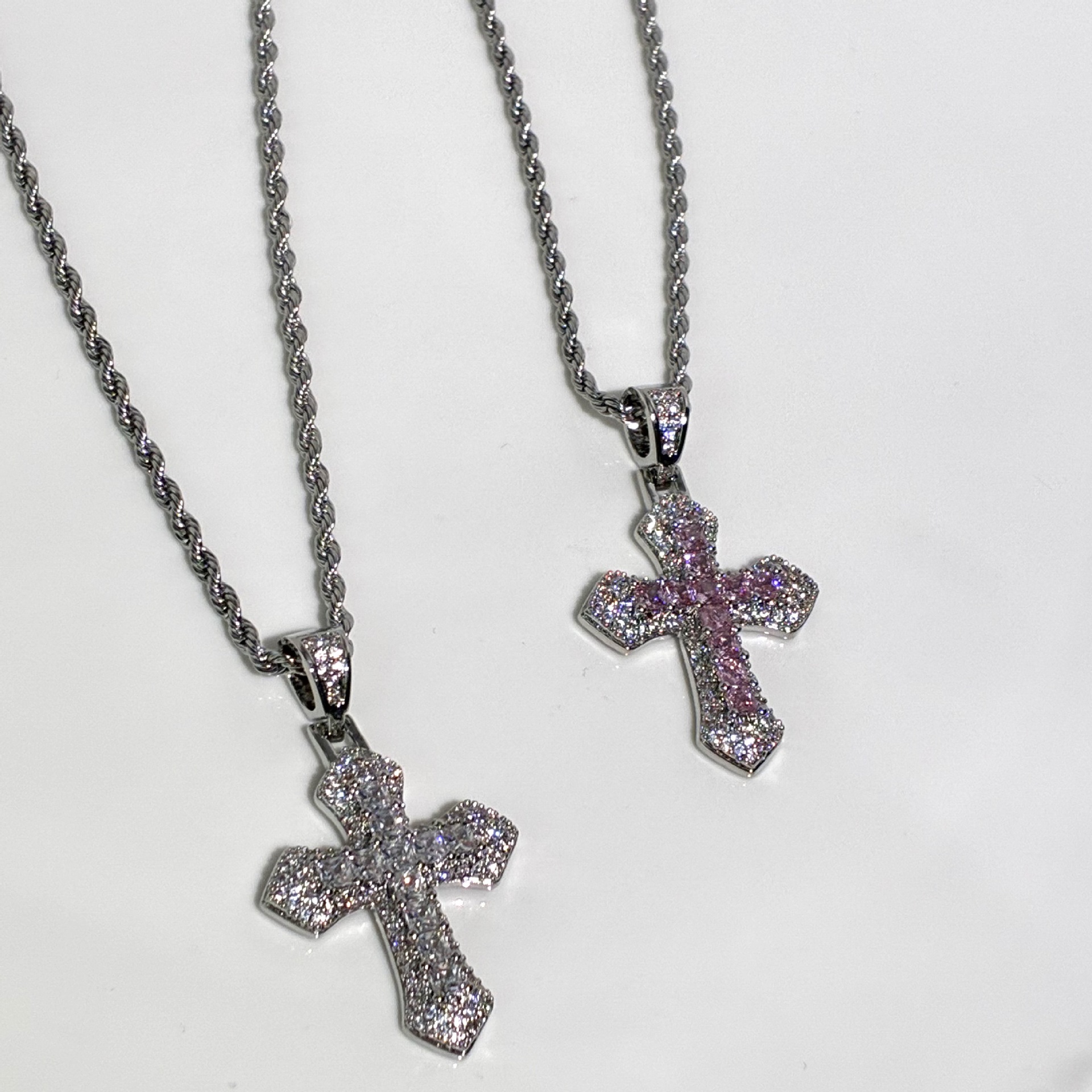 Sweet and Cool Spicy Girl Style Full Zircon Cross Necklace Ins Korean Light Luxury Niche Design Trendy Women's Accessory Necklace