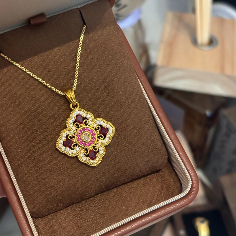 Little Red Book Explosive French Style Retro Court Style Four-leaf Clover Necklace Light Luxury Niche Elegant High-end Clavicle Chain for Women