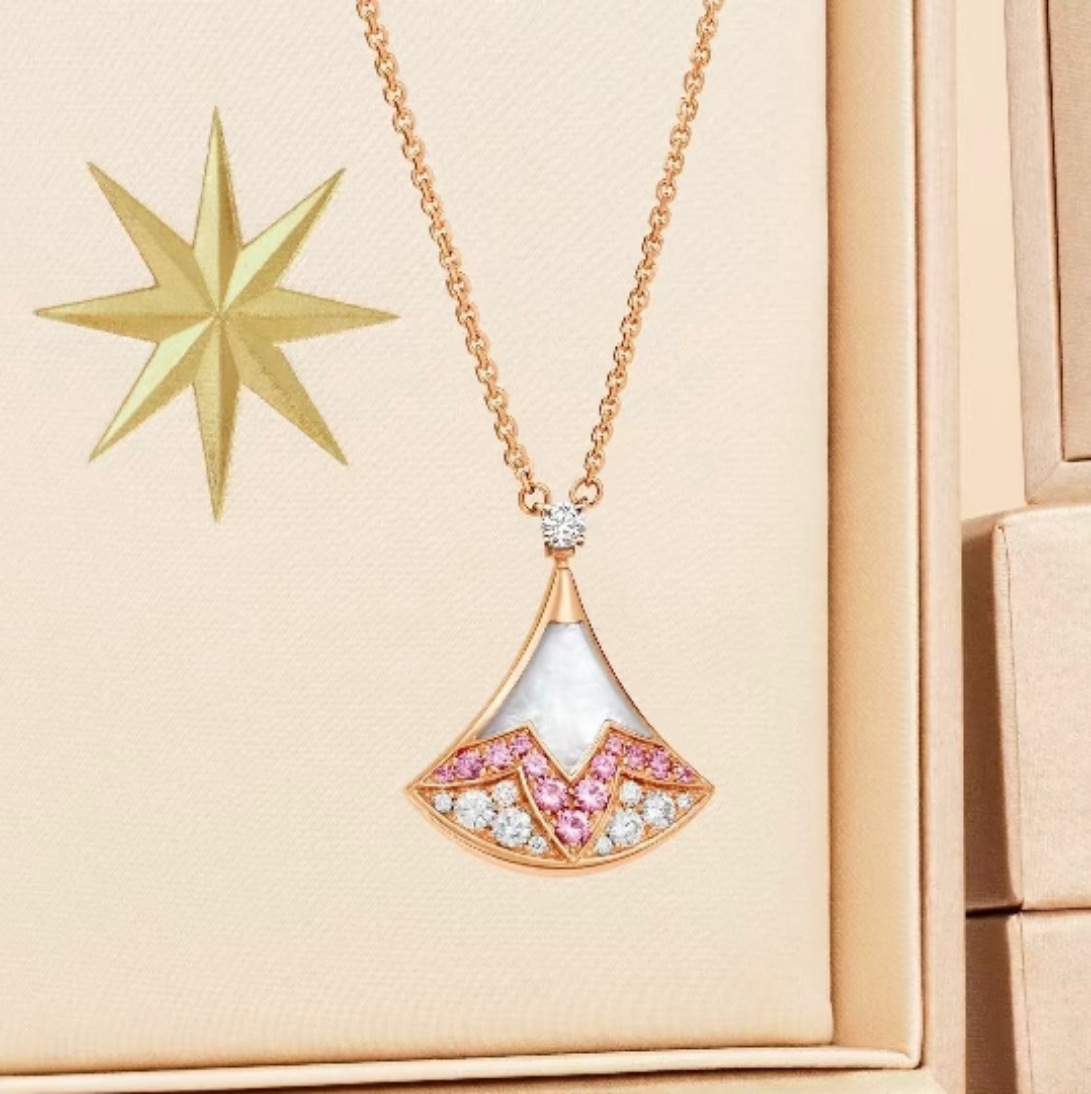 New Style Flexible and Rotatable Gradient Pink Diamond Mini Skirt Natural White Mother-Of-Pearl Light Luxury 18K Plated Pendant Clavicle Chain