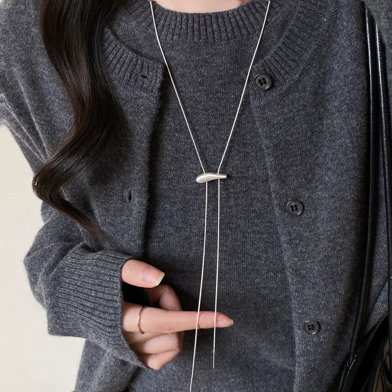 Minimalist Matte Brushed Necklace for Women, Autumn and Winter Long Adjustable Sweater Chain, Niche Versatile Neck Accessory
