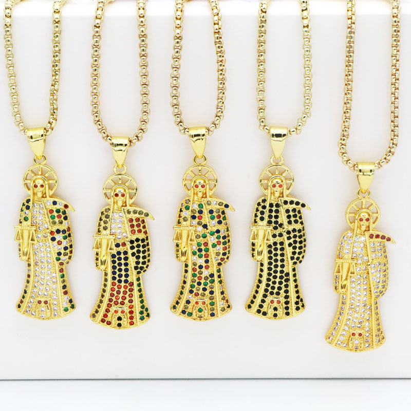 Fashionable Necklace Women's Distinctive Scythe Death Clavicle Chain ins Hip-hop Inlaid Colorful Zircon Pendant Neck Chain Woolen Chain