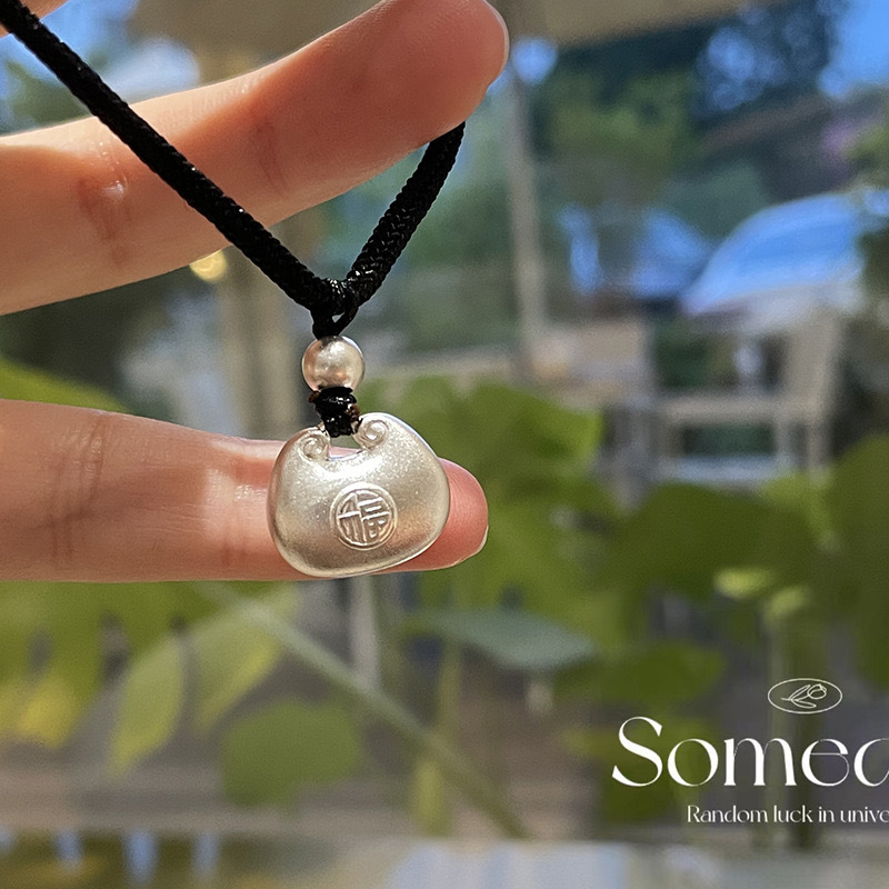 Live explosions solid white copper small fat fugu method rope necklace small silver tuo double-sided fuzi pendant national style retro