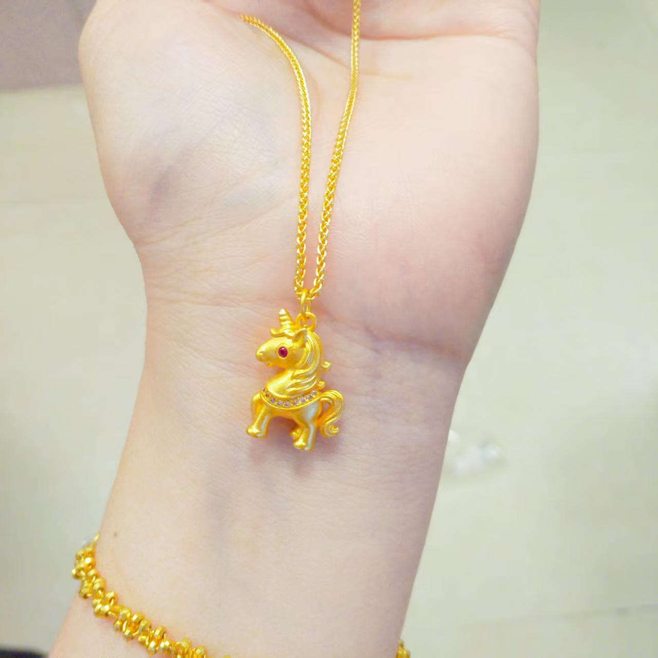 Vietnamese Sand Gold Dot Diamond Cute Horse Pendant Zodiac Year Pony Necklace Women's Elegant Clavicle Chain