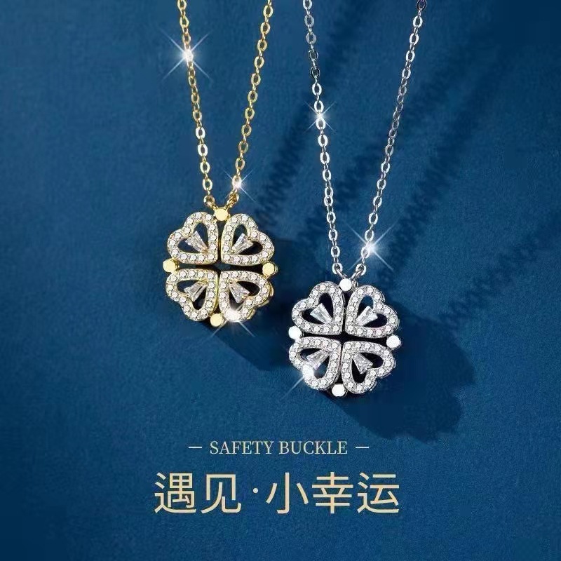 Women's two-piece heart-shaped clover necklace