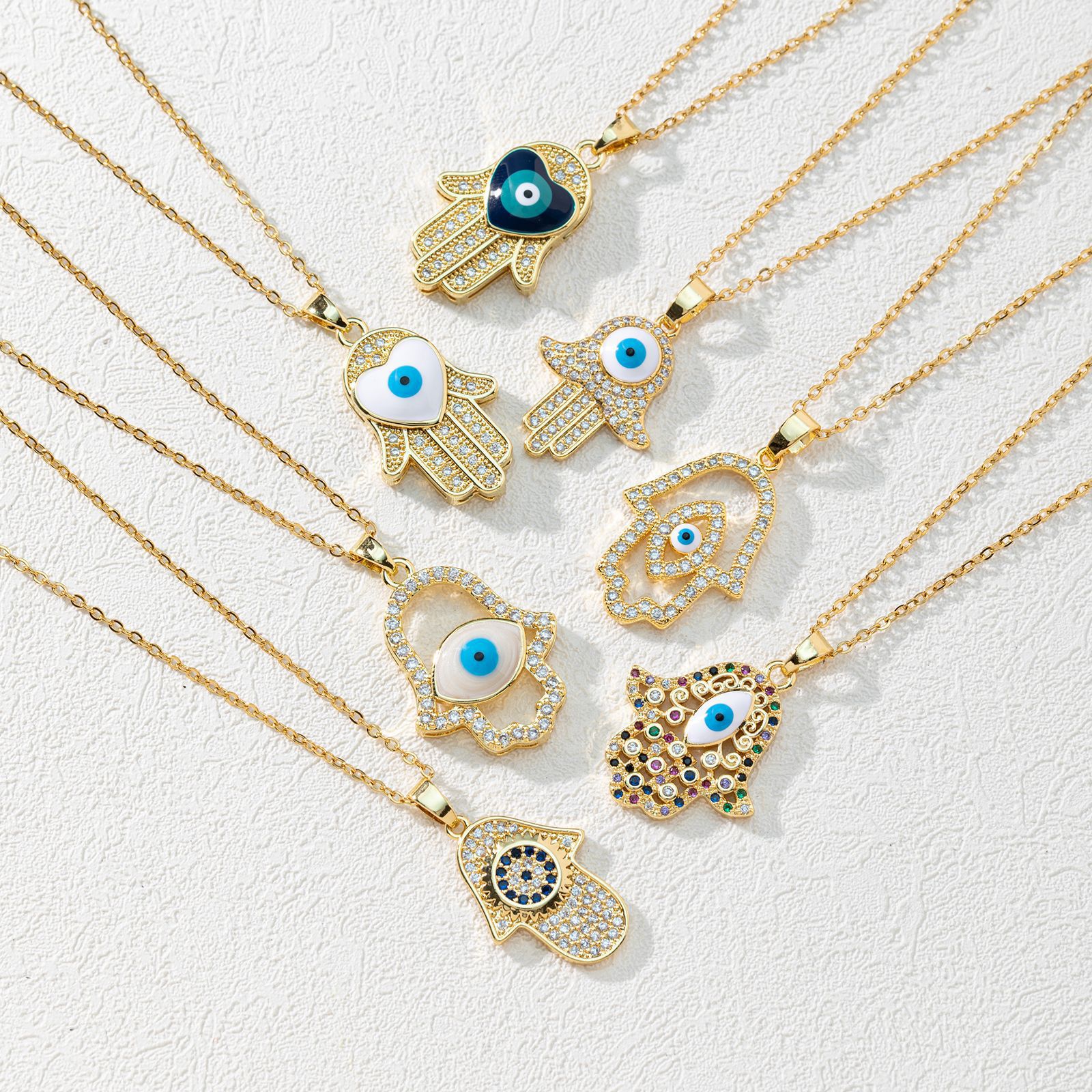 European and American Fashion Trend New Copper Zircon Devil's Eye Palm Necklace Pendant Micro-Embedded Electroplated Real Gold Sweater Chain