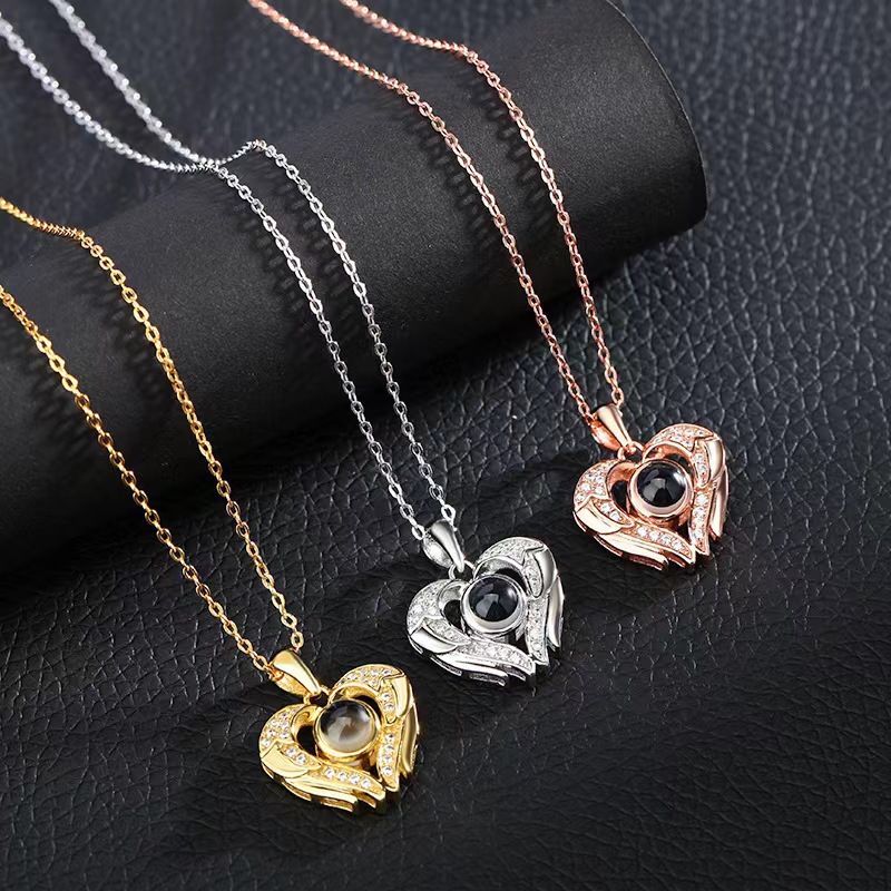 Cross-border foreign trade hot jewelry 100 languages I love you necklace custom photo text love wings pendant