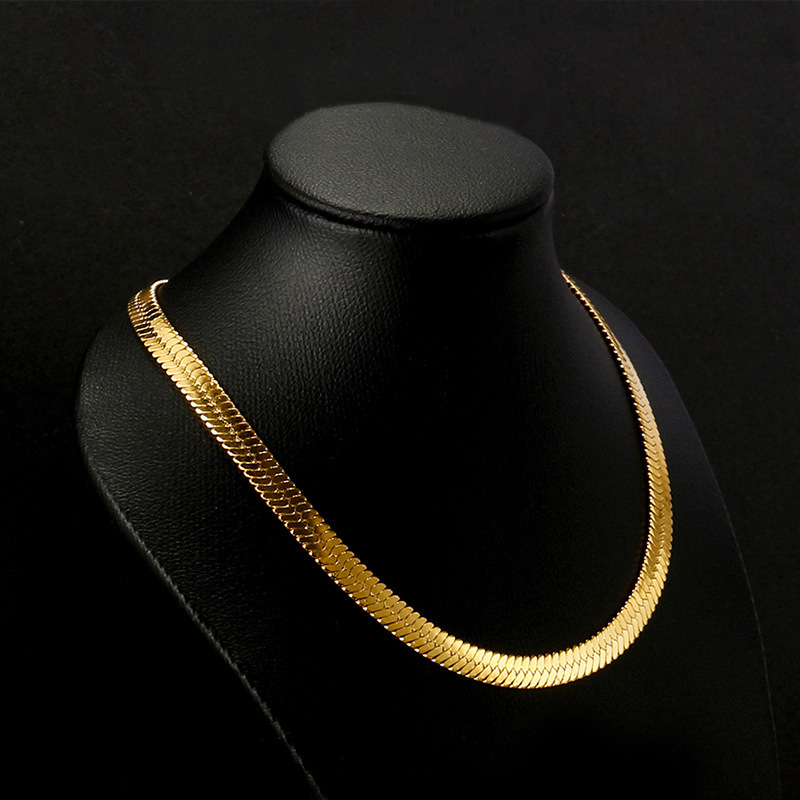 Cross-Border Jewelry Blade Chain Flat Snake Chain Gold-Plated Hand Retro High-End Photosensitive Surface Fashion Chain Simple Wholesale Necklace
