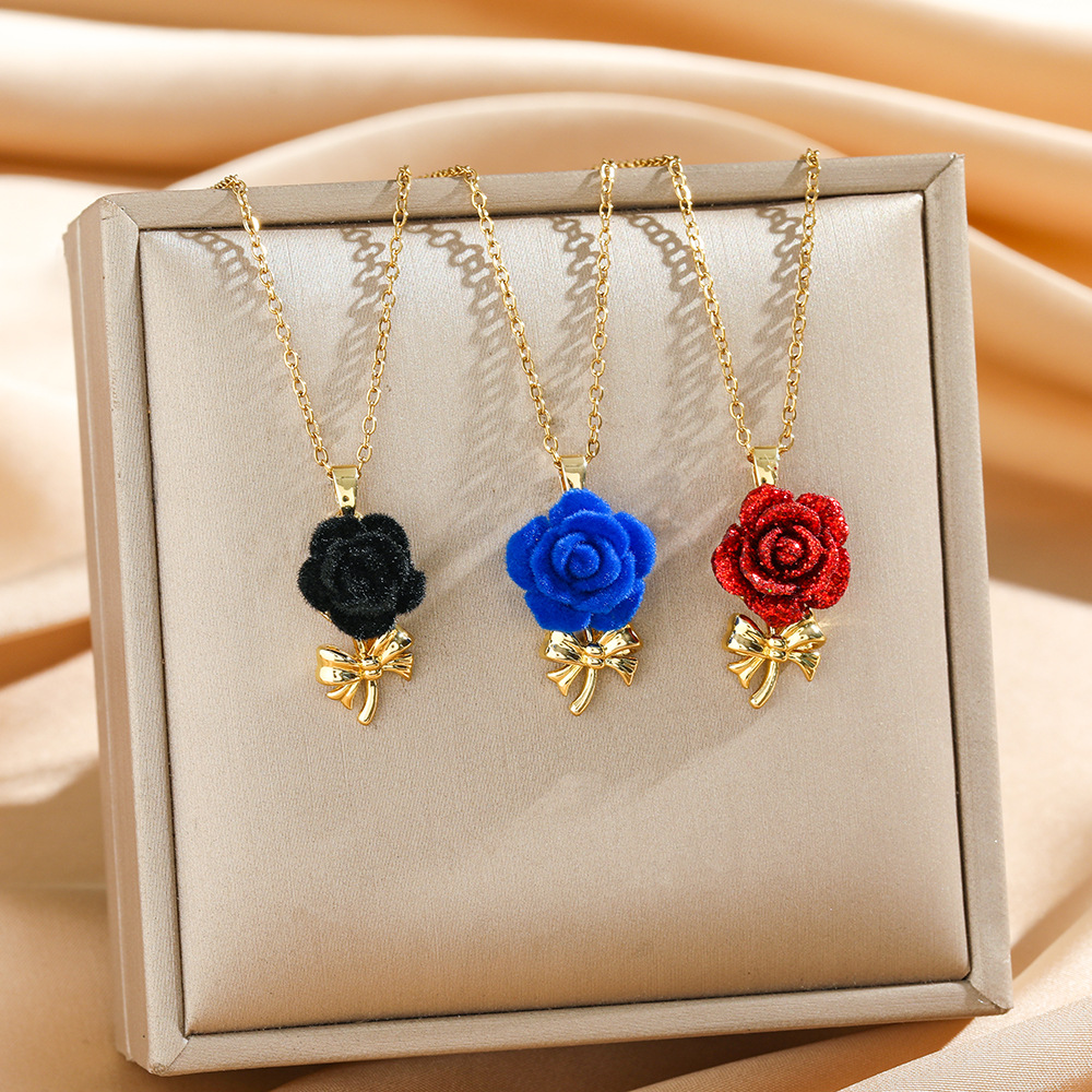 French-Style Necklace for Women with Rose Flowers, Full of Diamonds, Light Luxury, Versatile Jewelry, Personalized High-End Flower Necklace Accessories
