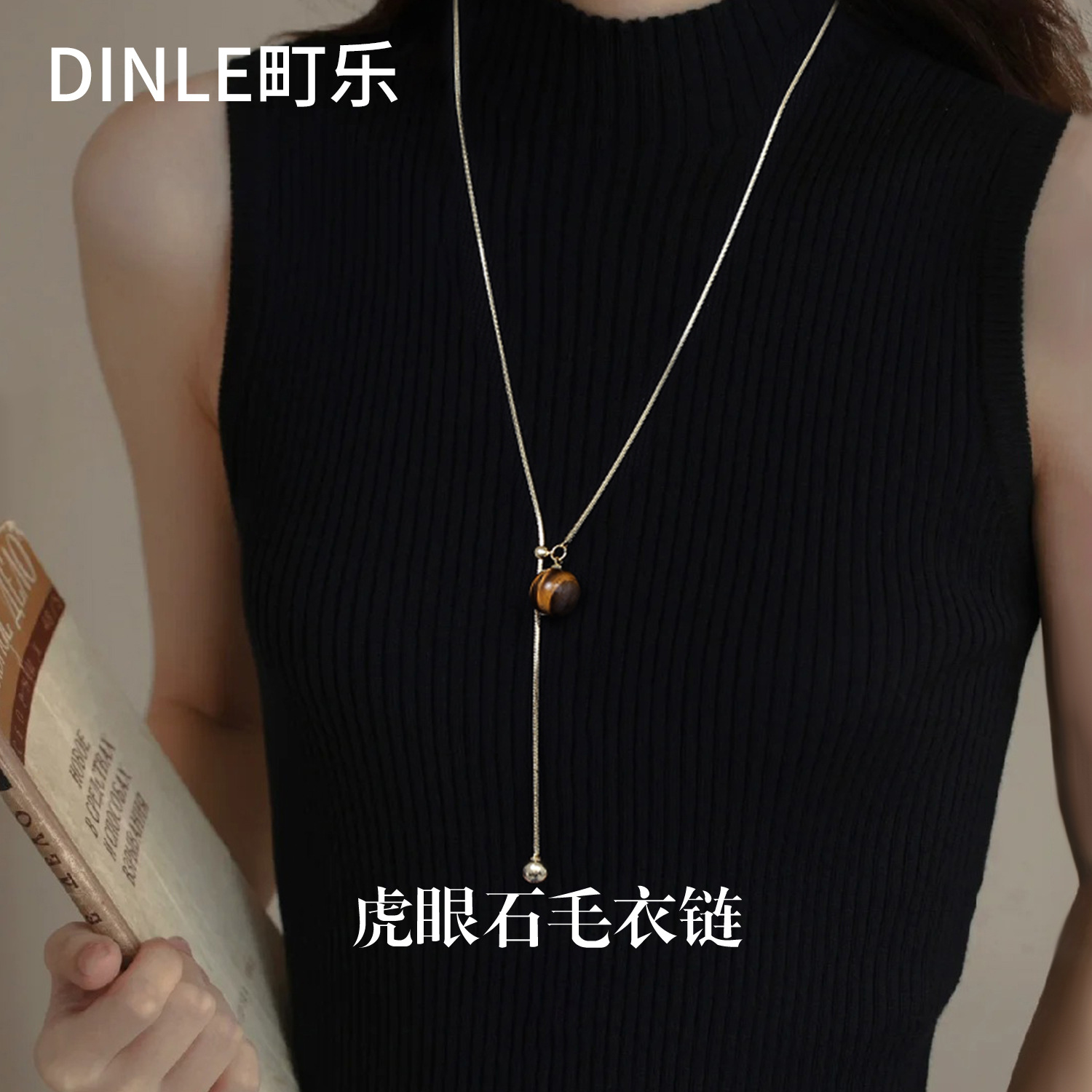 Autumn and winter long tiger eye stone sweater chain small popular all-match necklace women's light luxury high atmosphere necklace wholesale