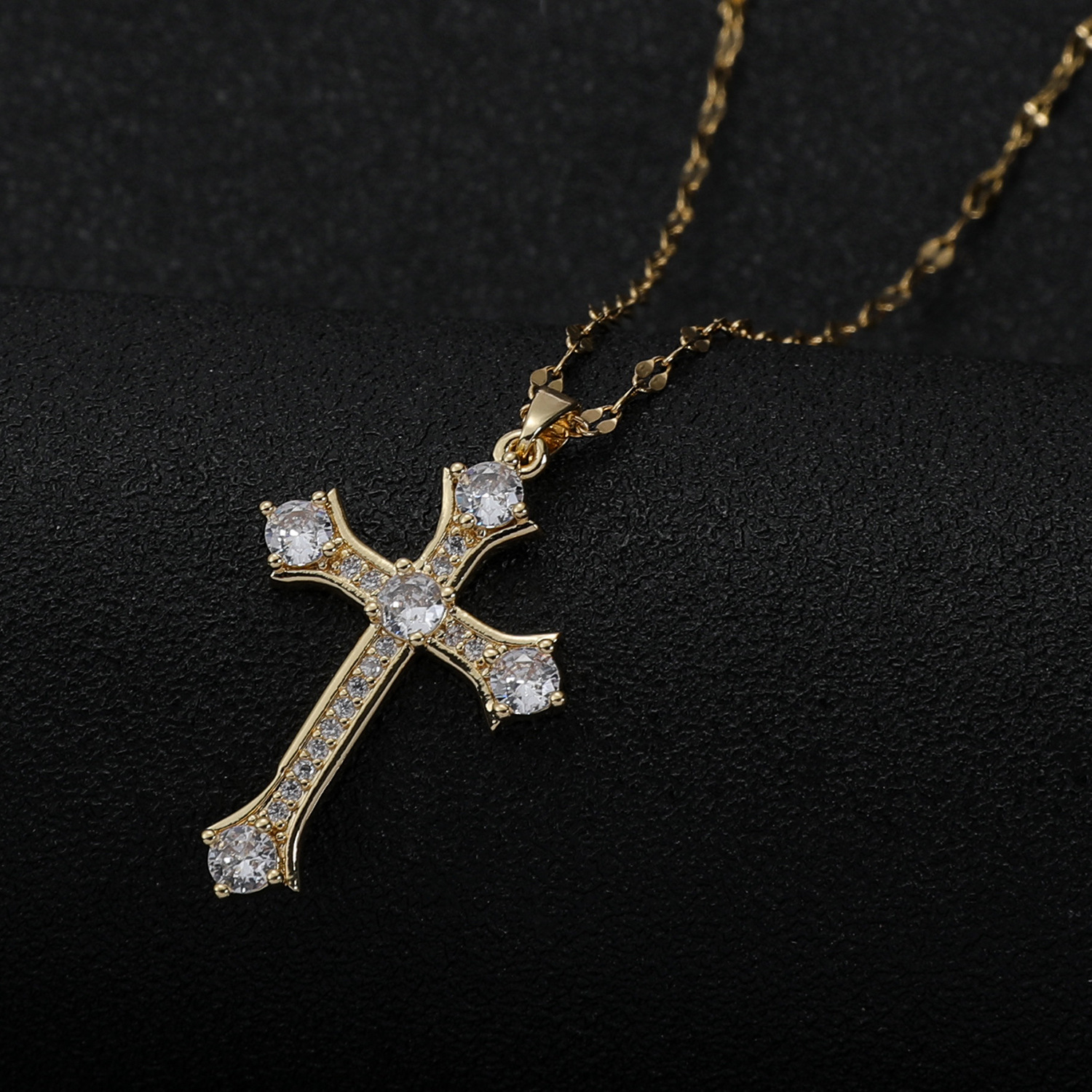 Factory Direct Sales Cross-Border Stainless Steel Micro-Set Large Diamond Cross Necklace for Women Manufacturer Wholesale