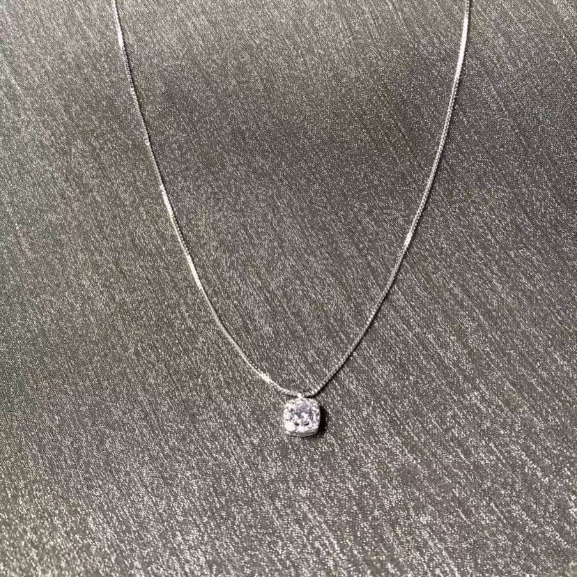 Small Square Diamond Pendant Necklace for Women, Ins-Style Light Luxury Niche Square Design Versatile High-End Collarbone Chain, Internet Celebrity Minimalist Style