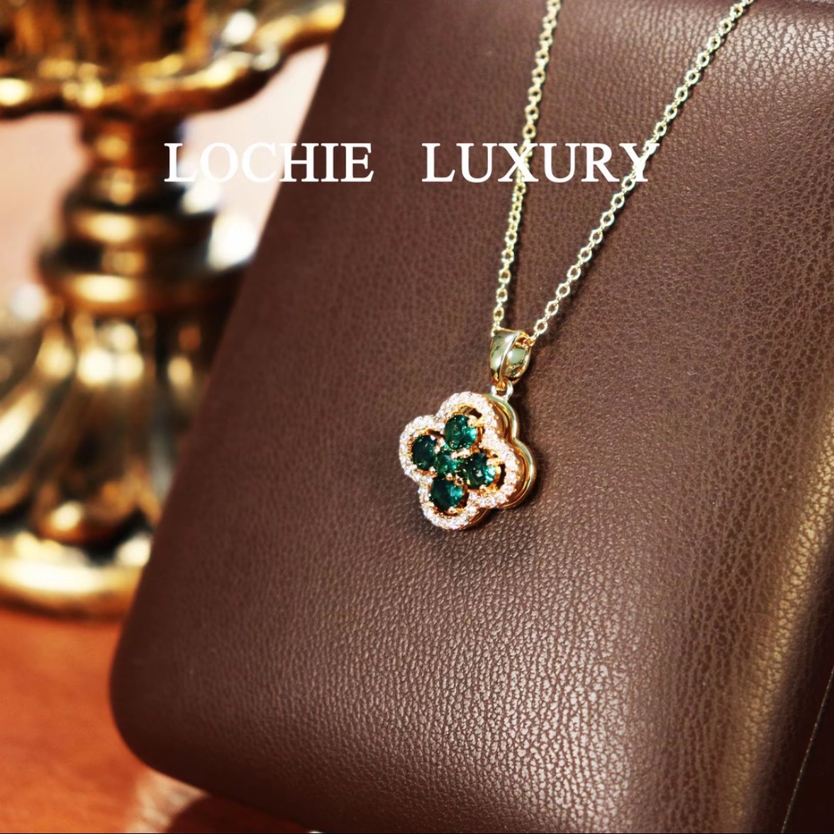 ★ Wizard of oz ★ Rotating Zircon Green Four-Leaf Flower Light Luxury Versatile Necklace Factory Direct Sales Dropshipping