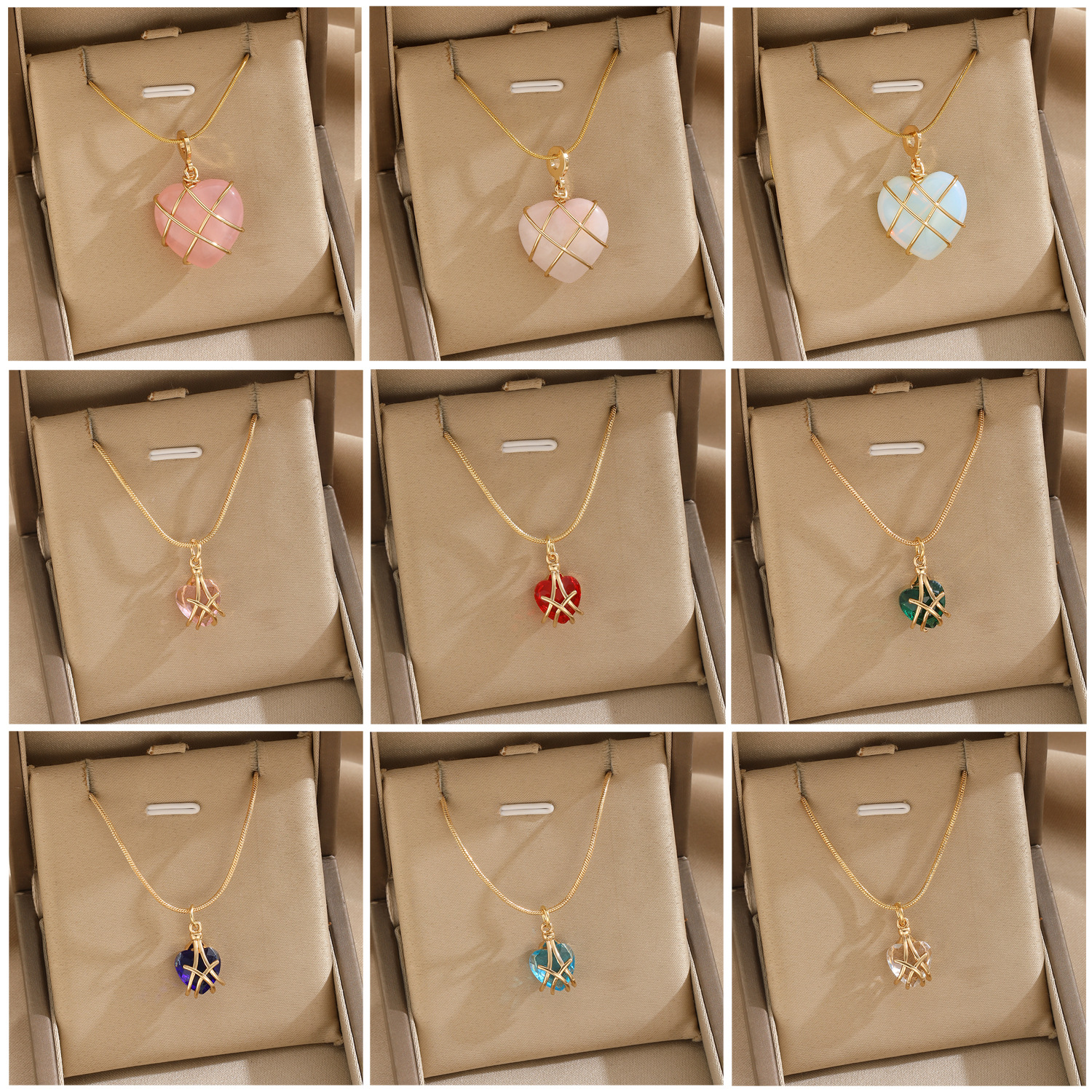 Round Pink Crystal Necklace Women's High-end Niche Design ins Style Simple Elegant Sweet Clavicle Chain Pendant
